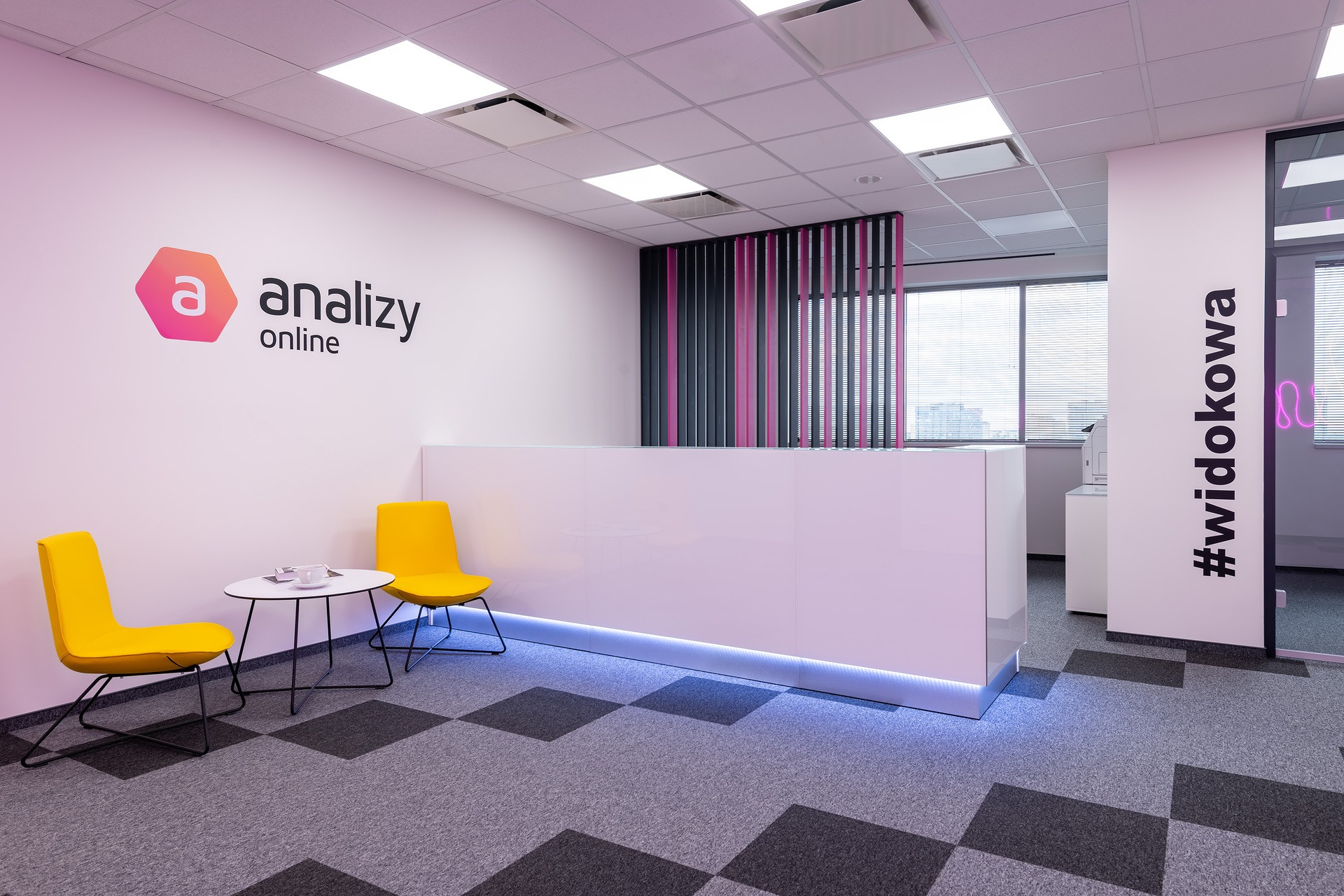 Wraz z rozwojem firmy Analizy Online oraz KupFundusz.pl dotychczasowa powierzchnia, zajmowana przez obie firmy, stała się niewystarczająca. Wszystkie biurka były zajęte, nie było już ani jednego miejsca dla nowego pracownika, co ograniczyło do zera dalszy rozwój kadrowy obu firm. Nie bez znaczenia był też fakt, że jeżeli chodzi o wystój biura, mówiąc delikatnie, nie było się czym chwalić. Podczas pracy z Helikon uwzględnione zostały elementy nawiązujące indywidualnie do poszczególnych obszarów biura i działów je zajmujących. Co sprawiło, że łatwo orientujemy się w przestrzeni. Wierzymy, że udało nam się zaprojektować doświadczenia użytkownika i przekazać wartości firmy w środowisku pracy. Na pierwszym miejscu postawiliśmy na nowoczesność i kreatywność.