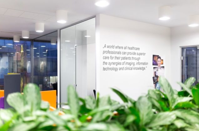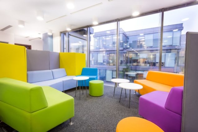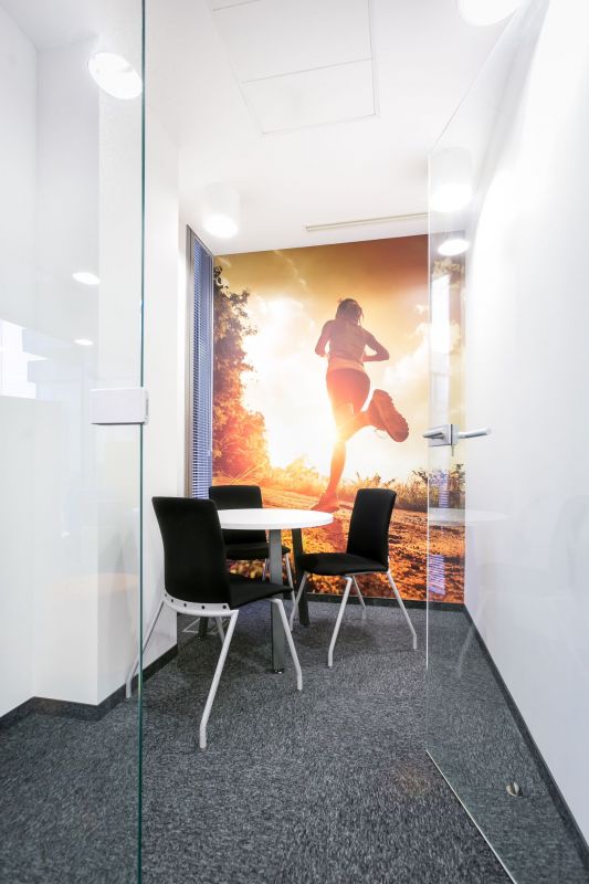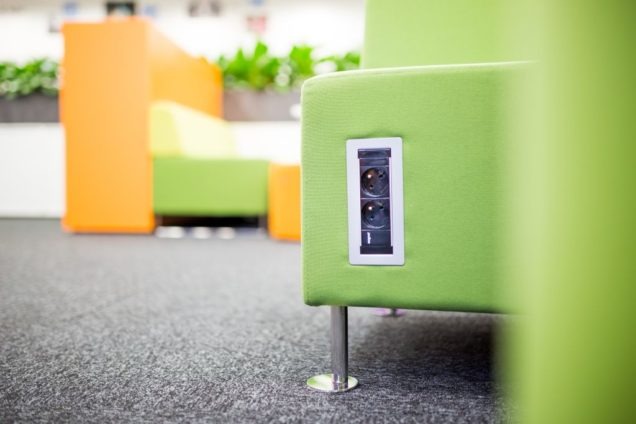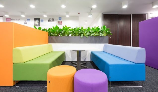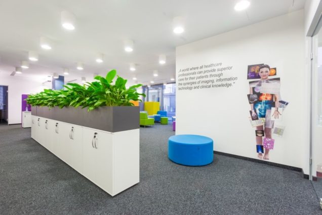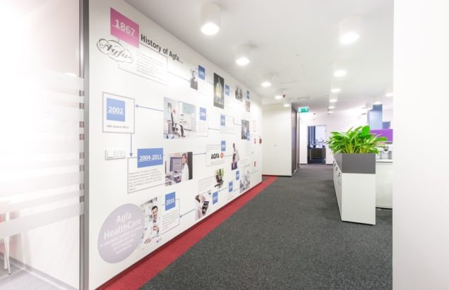 Agfa w nowym biurze. Strefa wejścia i do spotkań przy wejściu do biura. Kluczowa rola reprezentacyjna i funkcjonalna dla odwiedzających firmę przedstawicieli handlowych przyjeżdżających z całej polski na zebrania. Całość uzupełniona o Coffee Piont – co więcej potrzeba do formalnych i nieformalnych spotkań?