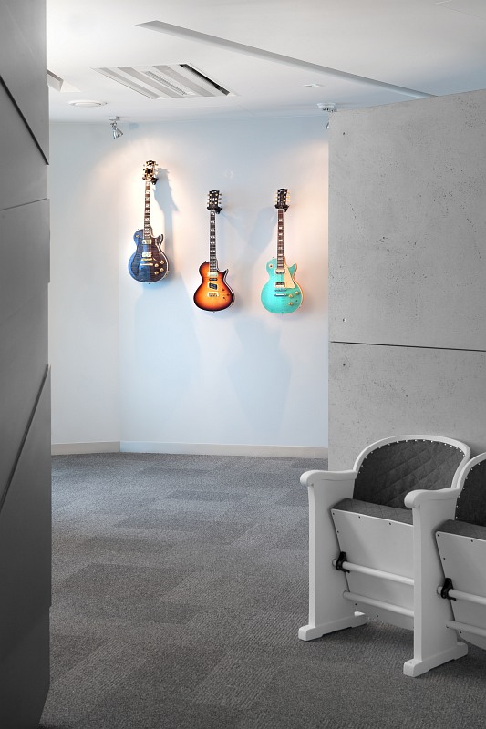 Oddanie charakteru działalności firmy w wyglądzie wnętrza to jedno z największych wyzwań. Dlatego spójny wizerunek wnętrza z wizerunkiem marki to ważna rzecz. Pokazujemy biuro Gibson – renomowanego producenta gitar.