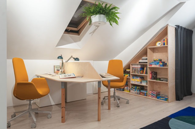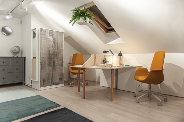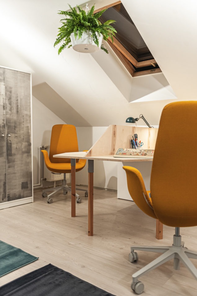 Tomasz Pągowski zrealizował metamorfozę pokoju nastolatków z wygodnym miejscem do spania, strefą gier oraz miejscem do nauki. Kluczowym elementem były fotele ELLIE– wygodne i ergonomiczne, ale równocześnie eleganckie i dające wkomponować się w wystrój domu.