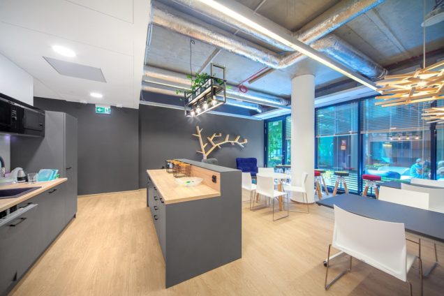 Dodatkowo, w jednym open space, pojawił się punkt spotkań, który ze względu na dynamikę pracy zespołu nazwaliśmy ,,Patelnia” – zapewne większość osób kojarzy ?